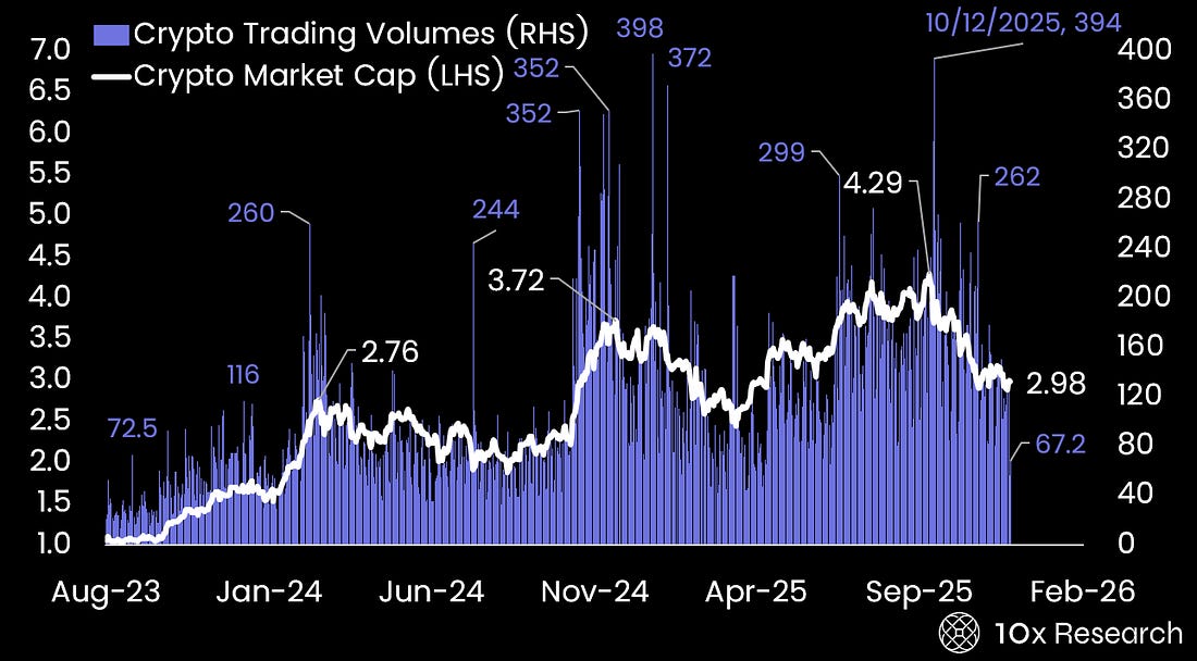 The report covers derivatives positioning, volatility trends, and funding dynamics across Bitcoin and Ethereum, along with sentiment, technical signals, ETF and stablecoin flows, option activity, expected trading ranges for the next 1–2 weeks, and key upcoming market catalysts. Why this report matters Year-end liquidity is evaporating across crypto markets, but the implications go well beyond quiet holiday trading. Futures positioning, ETF flows, and option markets are sending a coordinated signal about how traders are de-risking into year-end. Volatility is compressing rapidly, yet derivatives pricing suggests this calm may be temporary rather than benign. Bitcoin and Ethereum are hovering near critical levels where positioning shifts, not headlines, could drive the next move. With leverage unwinding, stablecoin flows weakening, and skew dynamics quietly improving, the risk-reward profile is changing in subtle but important ways. Crypto Market Cap ($2.98 trillion) vs. Trading Volumes ($67.2 billion) Continue reading this post for free in the Substack app |