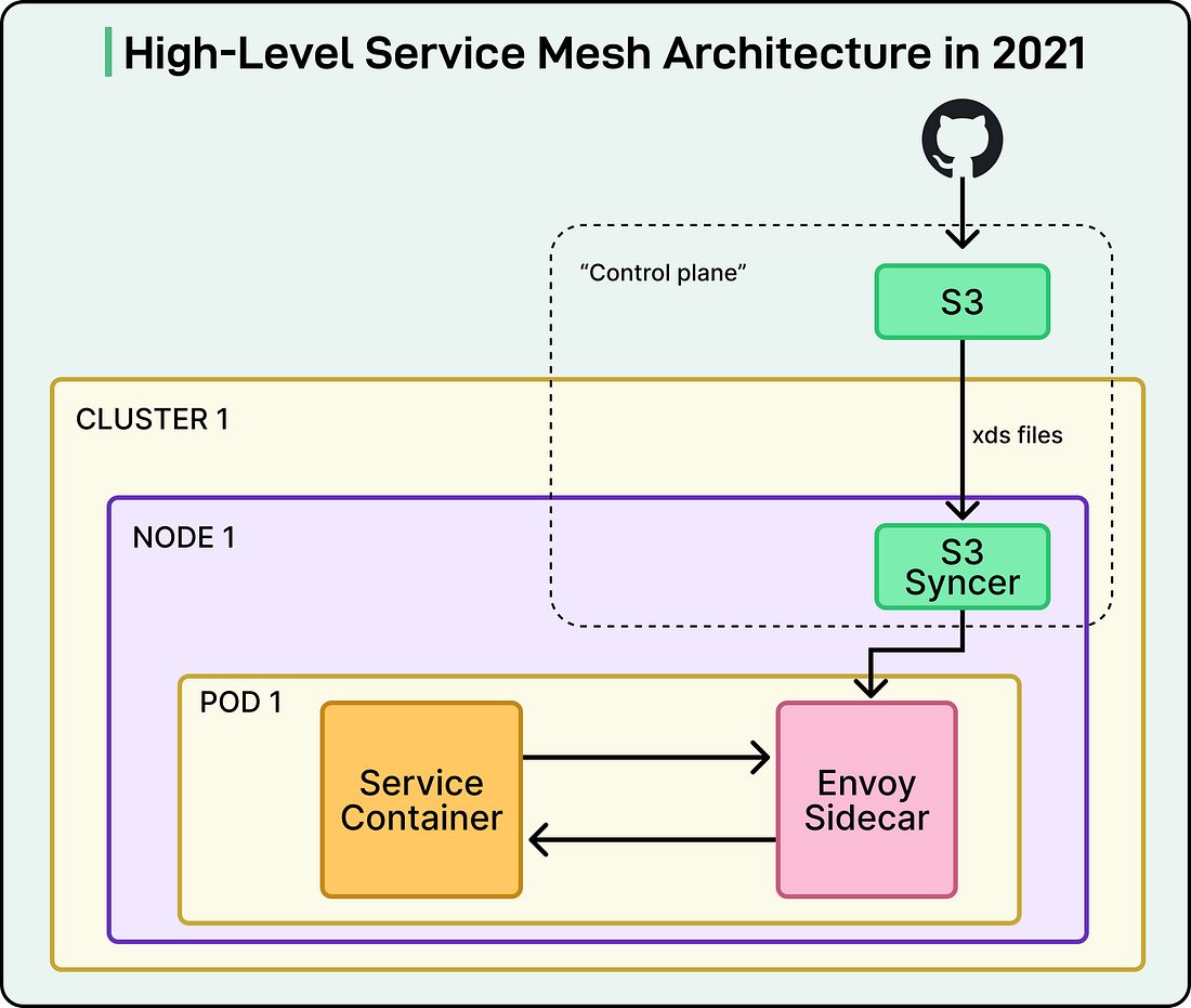 See the diagram below: The service mesh had to integrate seamlessly with this existing setup and accelerate the adoption of this standardized communication model. The immediate goal was to deliver a minimal feature set to the two major services involved in the outage within three months. The broader goal was to support general onboarding for all services within a total of six months. Some important concerns were as follows: