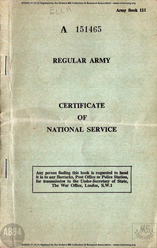 file Army Book 111. Regular Army. Certificate of National Service War Office ELLA, CDG, 23626203, Royal Army Service Corps, Royal Military Police. AT2025.11.10 19610603 https://www.patreon.com/posts/148839298/